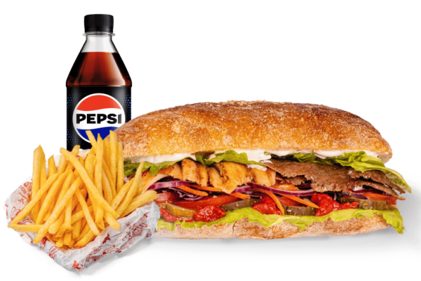 Нестандартна, але по-особливому смачна наша новинка. Для цього ми обрали італійську класичну булочку – паніні, експерементуючи з вашими улюбленими інгрідієтами: теляче та куряче кебаб м’ясо, помідор, маринований огірок з кримською цибулею, не забувши про фірмовий білий соус на основі грецького йогурту з нотками часнику.